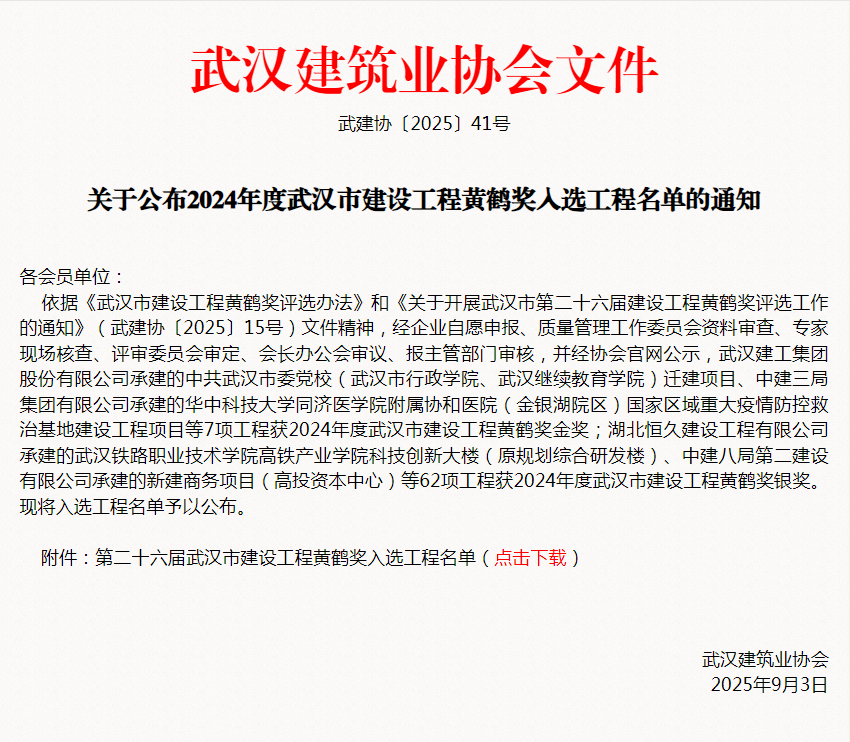 - 2025-09-10再添8項!湖北省建工第五建設有限公司榮譽持續刷新[圖]
